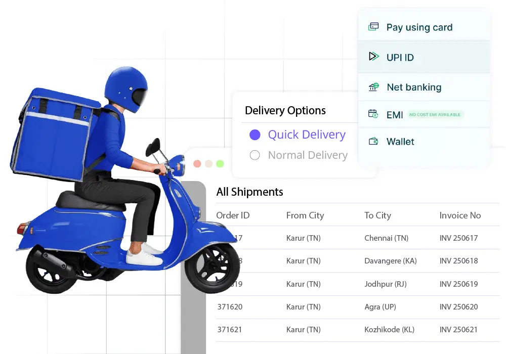 Accept secure online payments through UPI, cards, and cash on delivery. Once an order is placed, it automatically syncs with delivery partners. From payment to doorstep, we’ve streamlined everything so your customers enjoy a smooth buying experience.
